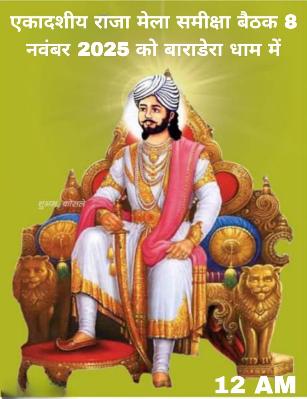 सर्व 100 गवां सतनामी समाज स्थापना एवं गुरुद्वारा धर्मसभा संसद, भारतवर्ष की ओर से जारी सूचना के अनुसार, पूज्य महान प्रतापी गुरु बालक दास साहेब जी के एकादशीय राज्याभिषेक राजा मेला वर्ष 2025 की समीक्षा बैठक का आयोजन आगामी 8 नवम्बर 2025, दोपहर 12 बजे से बाराडेरा धाम, तुलसी में किया जा रहा है।