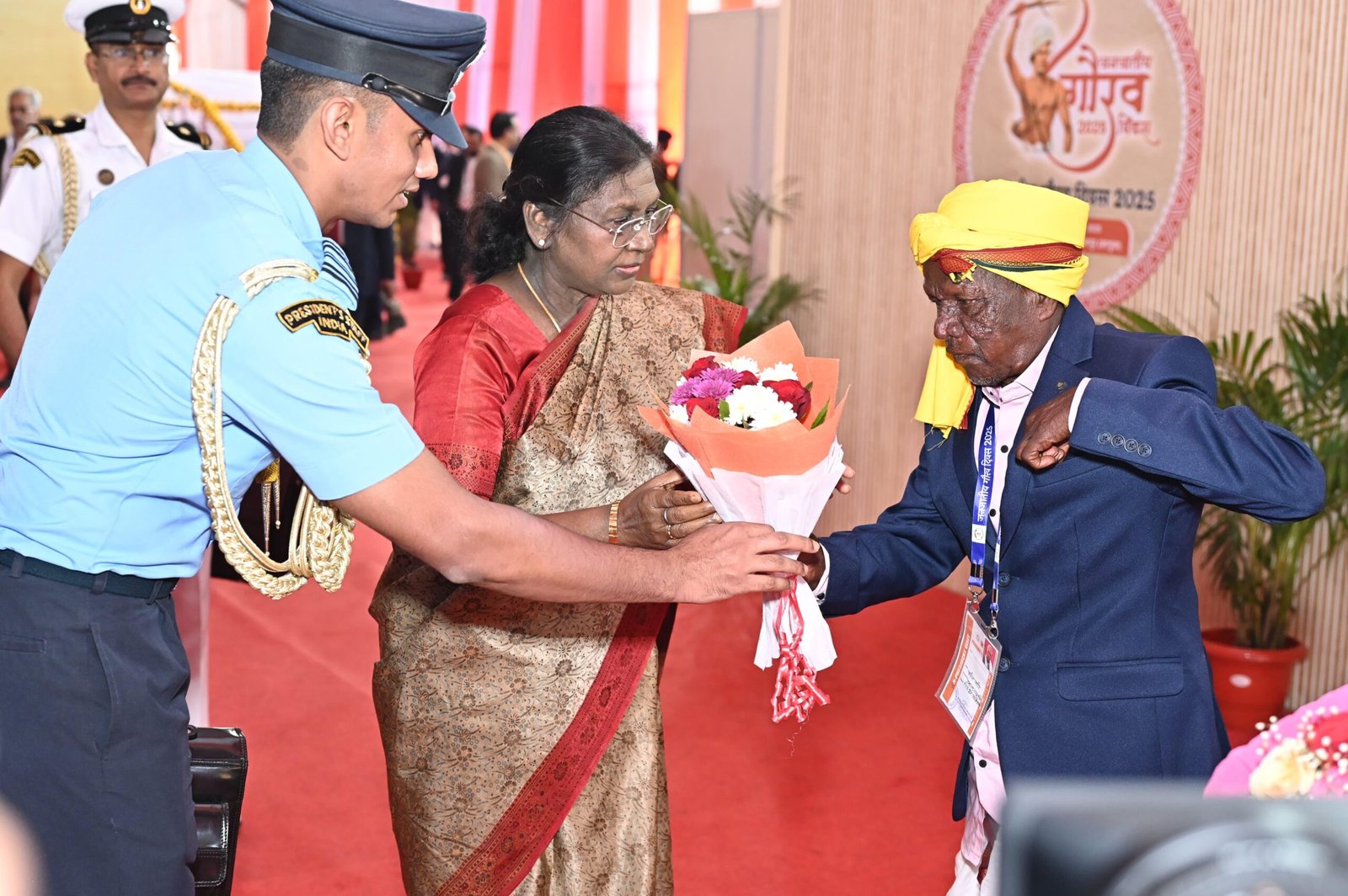 कार्यक्रम स्थल पर जब वृद्ध बसन्त पण्डो राष्ट्रपति मंच के पास पहुँचे, तो राष्ट्रपति मुर्मु ने स्वयं आगे बढ़कर उनका अभिवादन किया, उन्हें पास बुलाया और स्नेहपूर्वक शॉल ओढ़ाकर सम्मानित किया।