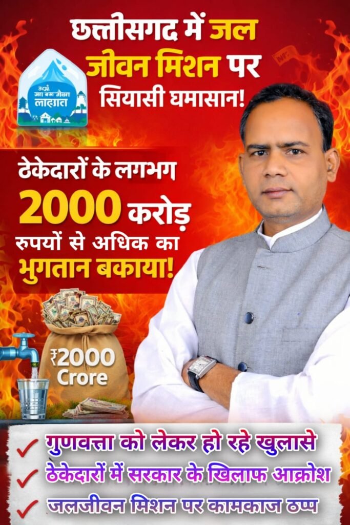 рд░рд╛рдпрдкреБрд░, 02 рдЕрдкреНрд░реИрд▓ 2026ред рдЫрддреНрддреАрд╕рдЧрдврд╝ рдореЗрдВ рдЬрд▓ рдЬреАрд╡рди рдорд┐рд╢рди рдХреЛ рд▓реЗрдХрд░ рд░рд╛рдЬрдиреАрддрд┐ рддреЗрдЬрд╝ рд╣реЛ рдЧрдИ рд╣реИред рдЫрддреНрддреАрд╕рдЧрдврд╝ рдкреНрд░рджреЗрд╢ рдХрд╛рдВрдЧреНрд░реЗрд╕ рдХрдореЗрдЯреА рдХреЗ рд╡рд░рд┐рд╖реНрда рдкреНрд░рд╡рдХреНрддрд╛ рд╕реБрд░реЗрдВрджреНрд░ рд╡рд░реНрдорд╛ рдиреЗ рднрд╛рдЬрдкрд╛ рд╕рд░рдХрд╛рд░ рдкрд░ рдЧрдВрднреАрд░ рдЖрд░реЛрдк рд▓рдЧрд╛рддреЗ рд╣реБрдП рдХрд╣рд╛ рд╣реИ рдХрд┐ рд╕рд░рдХрд╛рд░ рдХреА рдЕрдХрд░реНрдордгреНрдпрддрд╛ рдХреЗ рдХрд╛рд░рдг рдкреНрд░рджреЗрд╢ рдореЗрдВ рдЬрд▓ рдЬреАрд╡рди рдорд┐рд╢рди рдХреЗ рдХрдИ рдХрд╛рдо рдардк рд╣реЛ рдЧрдП рд╣реИрдВ рдФрд░ рдареЗрдХреЗрджрд╛рд░реЛрдВ рдХреЗ рд▓рдЧрднрдЧ 2000 рдХрд░реЛрдбрд╝ рд░реБрдкрдпреЗ рд╕реЗ рдЕрдзрд┐рдХ рднреБрдЧрддрд╛рди рдмрдХрд╛рдпрд╛ рд╣реИрдВред