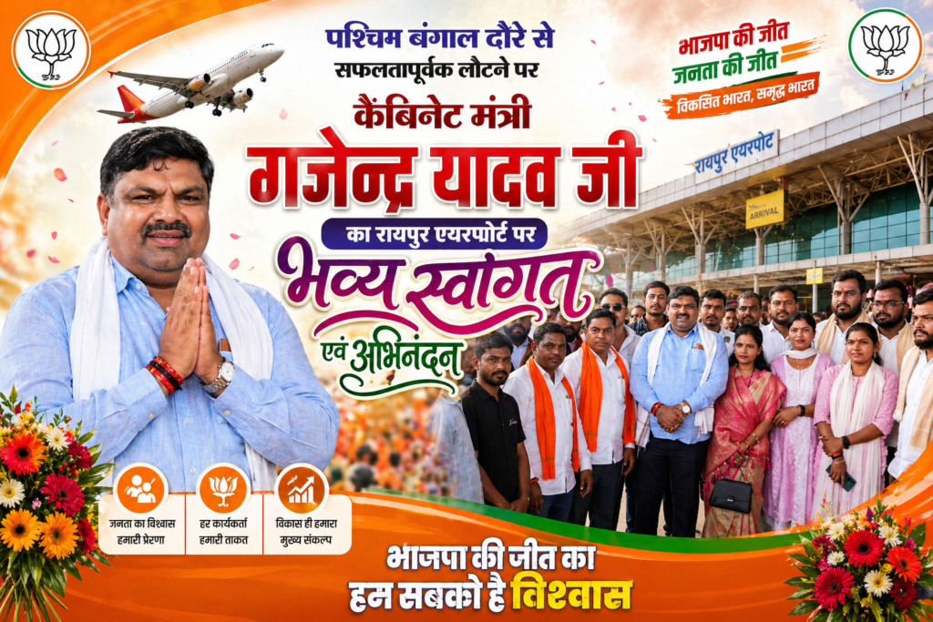 рд░рд╛рдпрдкреБрд░ | 26 рдЕрдкреНрд░реИрд▓ 2026 | рднрд╛рд░рддреАрдп рдЬрдирддрд╛ рдкрд╛рд░реНрдЯреА рд╕рдВрдЧрдарди рдХреА рдУрд░ рд╕реЗ рдкрд╢реНрдЪрд┐рдо рдмрдВрдЧрд╛рд▓ рдореЗрдВ рдЪреБрдирд╛рд╡ рдкреНрд░рднрд╛рд░реА рдирд┐рдпреБрдХреНрдд рдХрд┐рдП рдЧрдП рдХреИрдмрд┐рдиреЗрдЯ рдордВрддреНрд░реА рдЧрдЬреЗрдиреНрджреНрд░ рдпрд╛рджрд╡ рдЖрдЬ рдкрд╢реНрдЪрд┐рдо рдмрдВрдЧрд╛рд▓ рд╕реЗ рд▓реМрдЯрдХрд░ рд░рд╛рдпрдкреБрд░ рдкрд╣реБрдВрдЪреЗред рд░рд╛рдпрдкреБрд░ рдПрдпрд░рдкреЛрд░реНрдЯ рдкрд░ рднрд╛рдЬрдкрд╛ рдХрд╛рд░реНрдпрдХрд░реНрддрд╛рдУрдВ рдиреЗ рдЙрдирдХрд╛ рднрд╡реНрдп рдФрд░ рдЙрддреНрд╕рд╛рд╣рдкреВрд░реНрдг рд╕реНрд╡рд╛рдЧрдд рдХрд┐рдпрд╛ред